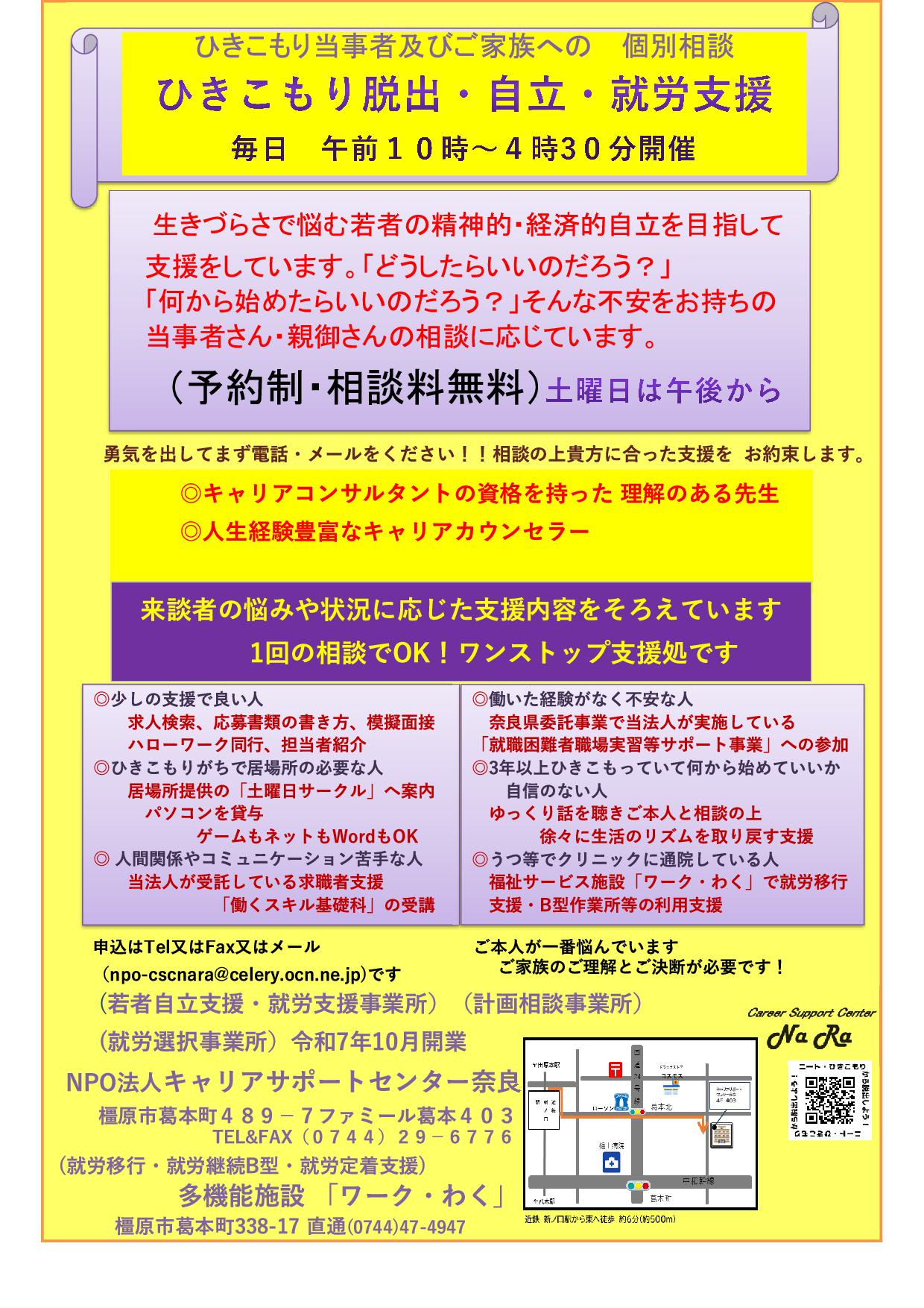 まずはご相談ください0744-29-6776npo-cscnara@celery.ocn.ne.jp